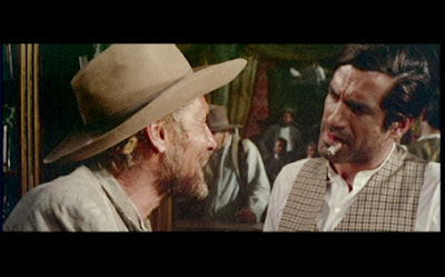 Back in town Ackerman and Temblar fall out with each other, as Ackerman refuses to pay half the ransom demand for Temblar’s son. A ludicrous demand to make, which terminates the little friendship that was between the two men, as they both start plotting how to trick the other out of his share. Milian brings the body of Evan back to his father and gets into a fight with him – possibly because he’s so frustrated and angered that his father’s greed has led to the boy’s death - a boy who the Stranger saved several times previously. Instead, Ackerman, who offers up his wife in return for protection, houses the Stranger. And protection he gets’s as the Stranger fends off Sorro’s men who try to claim the gold later that night. After the Stranger get’s his rocks off with Elisabeth that is.